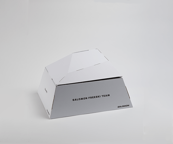 Nous avons été contacté pour imaginer et développer une box destinée aux athlètes de Salomon. Le but étant de contenir et présenter les produits sélectionnés pour les athlètes. Cette box devait être réalisée 100% en carton et sans collage. Bien évidemment cela devait être le plus différenciant possible. C’est pourquoi nous avons proposé une solution la plus éco-responsable possible en s’inspirant du minéral.